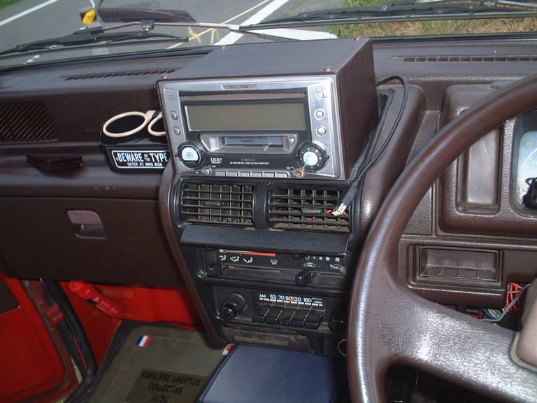 コードを裏から通してカーステの横っちょあたりに出してます。