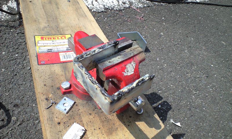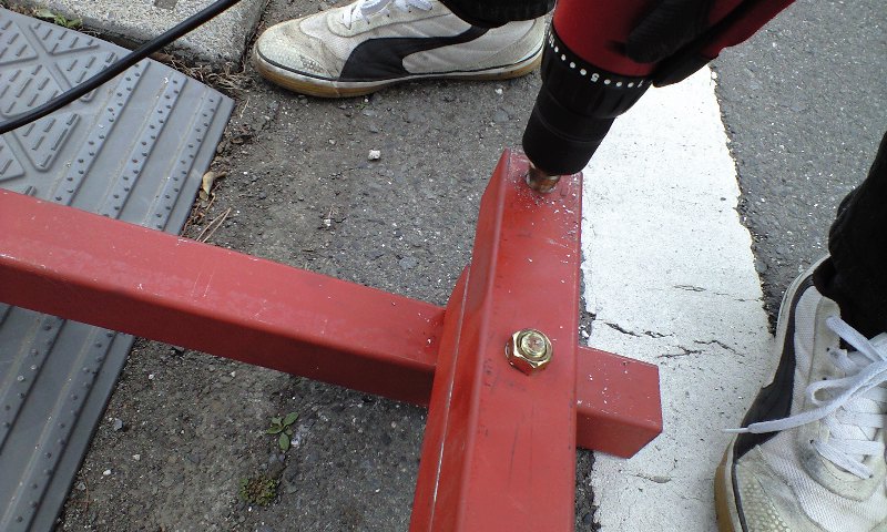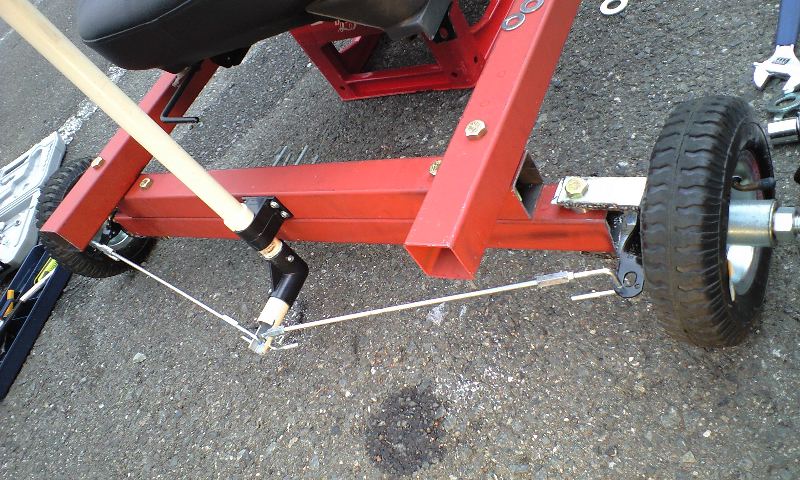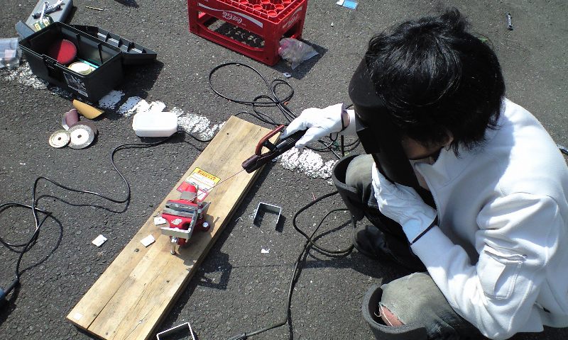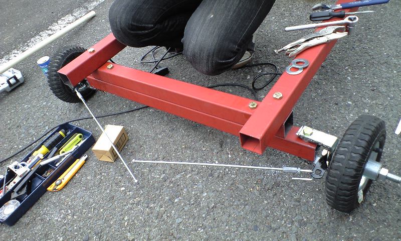 タイヤとフレームをつないでるシルバーのステーがさっき溶接して作ったやつです。