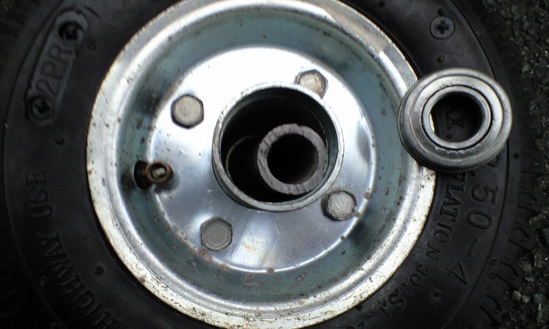 ベアリングが中に入り込んでしまい、うまくタイヤがまわならいというカンジでした。