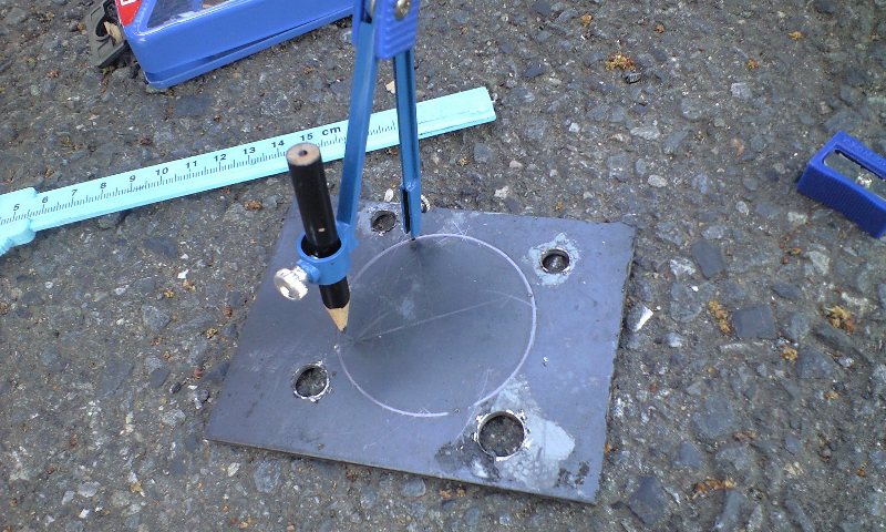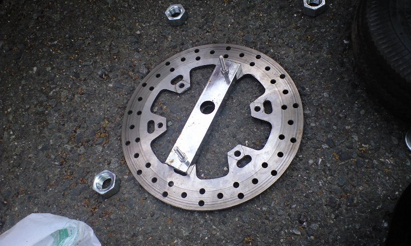 そんじゃ、スプロケのときと一緒でディスクに切り出した鉄板くっつけてセンター出すか。