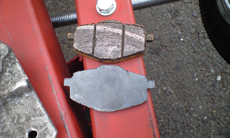 パッドの裏に鉄板を入れることには成功したんだけど、パッドが押し出されずにディスクと当たる面は同じくらいのままだった。