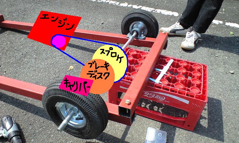 ブレーキキャリパーをあの辺に配置して、回転するディスクをはさんで止めると。
